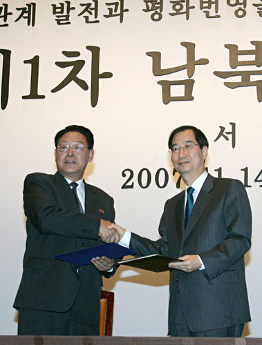 中新网11月16日电 综合韩联社报道,朝韩总理会谈双方代表团在16日上午举行的总结会议上通过了一项《关于履行“旨在发展朝韩关系及和平繁荣的宣言”的第一次朝韩总理会谈协议》(含八条共49项)和2项附加协议。