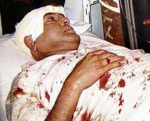 慕克吉随后被紧急送往当地一家小医院紧急接受治疗,但由于该医院设备简陋,只提供最基本的医疗设备,因此穆克吉做完手术后衣服上沾满血迹(见图)。在印度总理辛格的指挥下,慕克吉被转往首都一个军队医院继续治疗。他的头部已被缝了12针。目前慕克吉正在接受24小时医疗监控,防止出现意外。消息人士透露,慕克吉仍然清醒,眼睛可以转动。