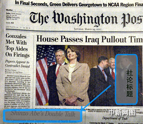 今年3月24日出版的《华盛顿邮报》曾刊发针对安倍晋三的一篇措辞严厉的社论。社论批评安倍晋三对日本所犯下的战争罪行含糊其词。