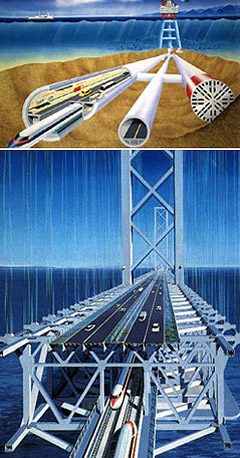 估计工程费为60万亿到100万亿韩元,工程时间为15~20年,是英法海底隧道(工程费约14万亿韩元,工程时间6年)工程费的5倍,工程时间的3倍多。至于建设几条隧道,是只建公路还是同时建设公路和铁路尚未定论。专家们估计,根据隧道的功能和路线情况,工程费和工程时间很可能会增加。英法隧道为三条(左右为单行道,中央为管理用)。