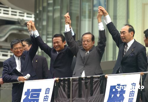 尽管已经入秋,但大阪的天气依然闷热,气温高达三十四摄氏度。不过,由于今天正逢日本法定休息日,依然有近万民众聚集到市中心难波车站前倾听两位竞选者的演讲。从现场反应来看,已是第二次出马竞选自民党总裁的麻生太郎在人气上明显压过老年持重的福田康夫。