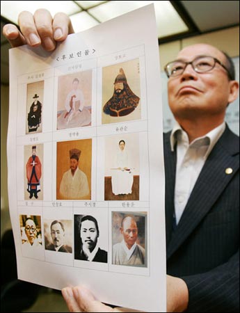 中新网10月22日电 韩国高额纸币上的肖像人物难以选择,目前仍有4人候选,分别是政治运动家白凡金九和安昌浩,女书画家申师任堂和科学家张英实。他们已成为2009年预定发行的10万韩元和5万韩元的高额纸币肖像人物的最终候选人。