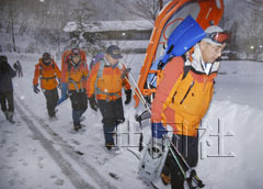 1月1日,日本警方赶往救助“北阿尔卑斯山”雪崩遇难者。(共同社图)