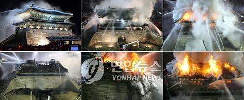 消防部门在接到火情举报后调动了32辆消防车和128名消防队员,但由于考虑到第一号国宝的特殊性而未能像普通建筑物一样进行灭火操作。崇礼门2楼阁楼于11日零时58分开始从面向首尔火车站方向开始塌方,结果凌晨1时54分左右整体木制框架完全塌落。(完)