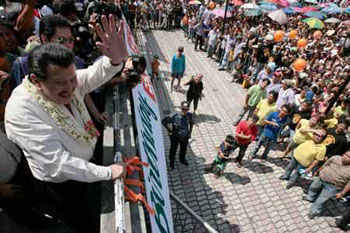 埃斯特拉达原本承诺不再过问政事,但依然坚持攻击身陷贪污丑闻的阿罗约,要求其立即辞职。他还决定在下次菲律宾大选时加入反对党阵营,埃斯特拉达13日在接受记者采访时说,“我将考虑。现在我没有竞选的打算,但是如果人民要求的话,我可以拒绝吗?”