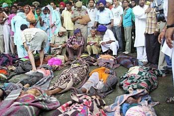 这起践踏事件发生在印度喜马偕尔省著名的“奈纳德维”女神殿,当时正举行为期10天的庆典活动,由于信徒人数太多,通往神殿的陡坡阶梯栏杆因承受不住而断裂,使得信徒开始从阶梯摔落,后方的民众则以为山上有大石滚落,争先恐后地奔逃,结果造成这场悲剧。