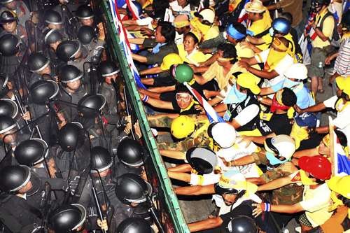 本月二十六日,民盟的支持者在曼谷举行大规模示威,冲击政府部门并占领总理府。尽管泰国民事法院发出命令,要求示威者撤出总理府,但领导示威的民盟拒绝执行法院命令,继续在总理府内举行示威。