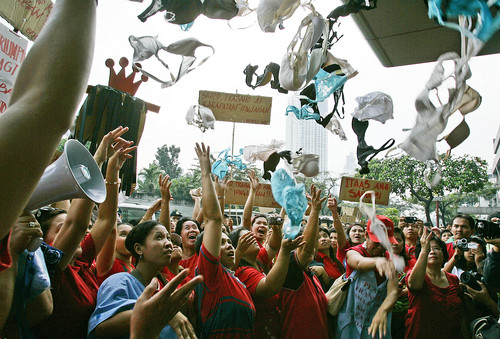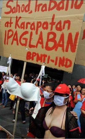 当日,数百名女工游行至该公司位于金融区马卡蒂的仓库示威,期间她们大抛女性内衣裤,以示不满。