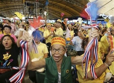 泰国前总理他信因一宗土地交易案,21日被最高法院判刑两年,多位学者建议民盟应该暂停街头示威,民盟核心领袖查隆22日响应表示,示威群众会继续在总理府内抗议,但会把地点集中在总理府。