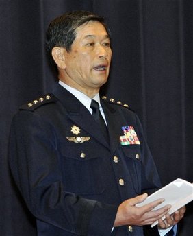 日本新上任的的航空幕僚长外薗健一发表演说。