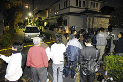 一名前厚生事务次官的妻子被刺事件发生后,现场周围一片混乱。(共同社)