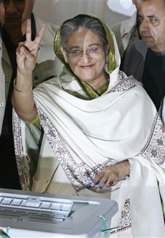 孟加拉国人民联盟领导人谢赫•哈西娜29日投票。