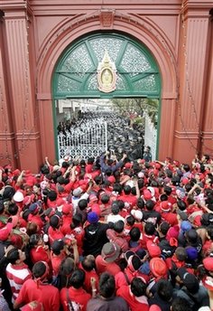 泰国支持他信的“红衫军”“反独裁民主联合阵线”(UDD)日前在国会大厦外进行示威时,误将国王普密蓬和王后诗丽吉的画像放在一幅带有攻击性标语的边上,此举倍受指责,反独裁民主联合阵线的领导人将面临冒犯君主罪的起诉。