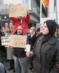 参加抗议活动的特定非营利活动(NPO)法人“巴勒斯坦儿童运动”常务理事大河内秀人当场宣读了请愿书,表示“孩子们营养不足,医疗器材的长期匮乏使得医院陷入瘫痪状态”,要求向加沙运送医药用品和食物,并允许人道救援组织自由出入加沙。