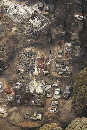 克里斯•哈维在该镇住了22年,他的家已被烧毁。他说:“通往镇上的公路上5辆车连环相撞,所有的汽车都烧焦了。”“我告诉你,估计里面的情况一定是满目疮痍,就像是核爆后的广岛。公路上到处都是动物尸体。”他的两个女儿维多利亚和阿里说,一名当地商人一家在逃走时,失去了两个孩子。