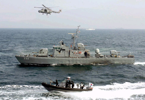 当天,韩国型驱逐舰“文武大王舰”、一架反潜直升机和两艘高速短艇和负责船舶搜查任务的海军特种士兵参与了演习。