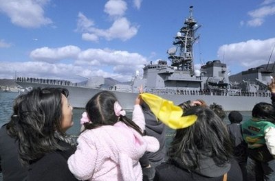 中新网3月14日电 据日本共同社报道,为打击索马里海域的海盗,日本防卫相13日下令根据《自卫队法》采取海上警备行动,海上自卫队两艘护卫舰“涟”号和“五月雨”号14日下午从广岛县吴基地启程出发。