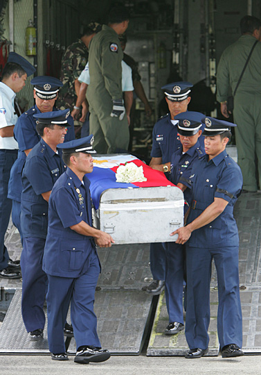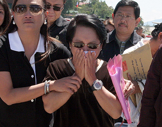 菲律宾总统阿罗约在走过遇难者的灵柩时痛哭失声。