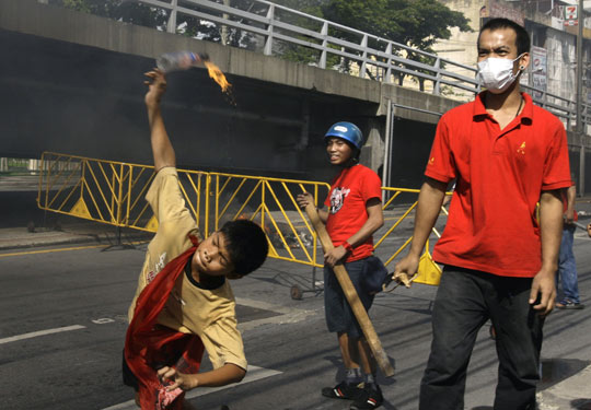 冲突点距离“红衫军”抗议主场——曼谷总理府——只有数公里。军方和示威者以催泪瓦斯、实弹和汽油弹互相攻击。至中午时分,军方向市中心的示威者开枪并发射高压水炮。