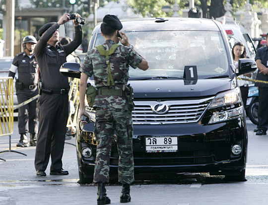 中新网4月17日电 综合外电报道,泰国人民民主联盟(PAD)领导人林明达(Sondhi Limthongkul)所乘坐的汽车在17日早晨遭到枪手袭击,林明达受轻伤,但其司机伤势严重。