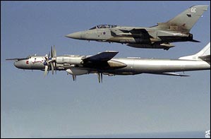 当时,英国皇家海军正在外赫布里底群岛海域举行“海王星战士”演习,两架俄罗斯“熊”式侦察机在附近进行侦查。在雷达发现这两架侦察机之后,英国皇家空军从位于范夫的卢哈斯空军基地紧急起飞了两架“狂风”F3战斗机进行拦截,并护送其离开了演习空域。