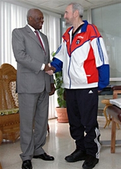 中新网9月23日电 综合报道,古巴23日公布了菲德尔•卡斯特罗的最新照片。照片中,卡斯特罗与来访的安哥拉总统若泽•爱德华多•多斯桑托斯亲切握手。