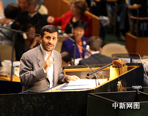 中新网联合国9月25日电(记者李静)伊朗总统内贾德二十五日下午在联大一般性辩论会上发言。