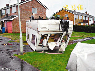 中新网9月26日电 英国近日受多达12起龙卷风吹袭,令大树倒塌,屋顶被扯走,车辆也被吹起,市面街道面目全非,暂时没有伤亡报告。幸好当时并非繁忙时间,否则情况不堪设想。