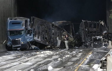 搜救人员当前在现场找到3具尸体。车祸引发大火,烧了4小时,300名消防员彻夜救火。隧道内车祸残骸长达800米,当局已开始清理现场,并着手调查意外起因。现场是加州南北交通主干道,交通陷入瘫痪,车辆1小时内只能移动100米。