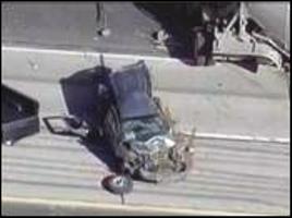 这起沙尘暴发生在当地时间16日,距离爱德华兹空军基地不远,沙尘暴风速达每小时88公里,洛杉矶消防局表示,公路上沙尘蔽天,能见度几乎等于零,导致许多汽车不得不突然减速,因而造成连环车祸,有些汽车被撞的七零八落,零件四处散落在公路上。