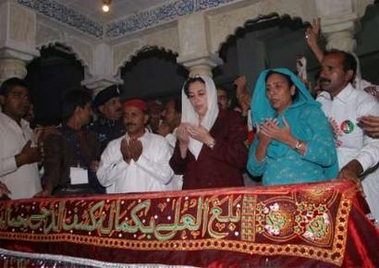 中新网10月28日电 巴基斯坦前总理贝·布托27日返回祖籍老家祭拜父亲陵墓。这是她9天前返国遭炸弹袭击以来首次公开旅行。