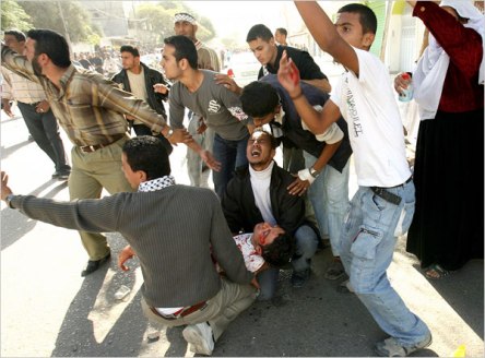 目击者说,当示威人群谴责哈马斯武装力量充当什叶派穆斯林当权的伊朗的代理人时,保安部队开始向示威者开枪。