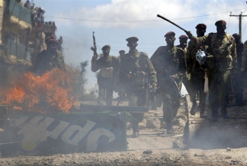 1月1日,肯尼亚军警正在维持秩序。许多肯尼亚民众在搬迁,躲避战乱。