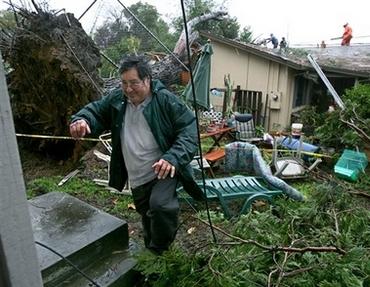 据加州州长紧急服务办公室发言人说,在洛杉矶的奇诺市,一名妇女企图逃离抛锚的汽车时,被洪水冲走;一名在萨克拉门托尤巴市的工人则被倒塌的大树压死。