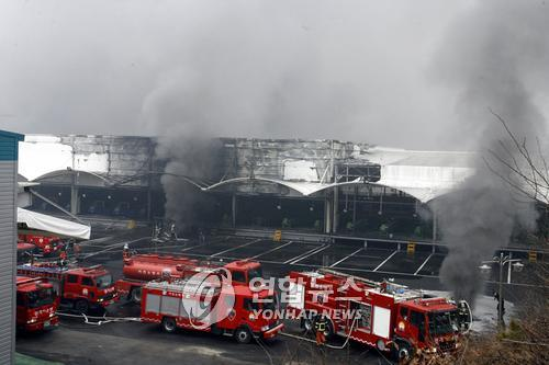 韩国利川某冷冻仓库发生爆炸。(韩联社图)