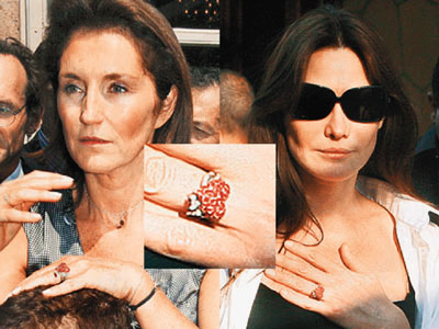 另外,《星期日镜报》报道,萨科齐送给新女友布鲁妮的钻石戒指,跟塞西莉亚几个月前戴的极相似,有人质疑萨科齐可能取回塞西莉亚的戒指转送布鲁妮。