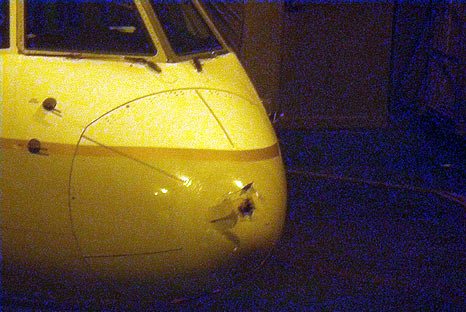 美国大陆航空波音757客机遭遇闪电袭击,机头严重损毁。