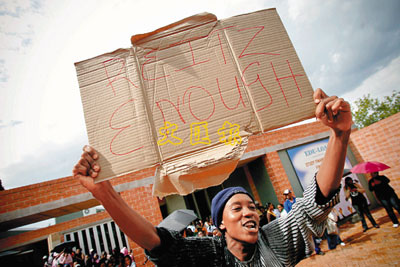 2月27日,南非布隆方丹的学生们举行游行,抗议白人学生摄制侮辱黑人视频。
