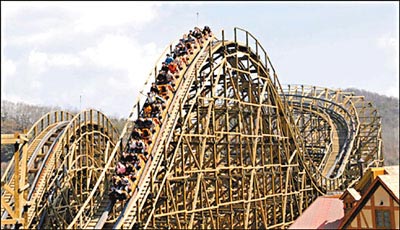 爱宝乐园的T-EXPRESS由木制造,是全球最陡峭的过山车。(网上图片)