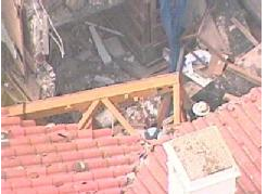 被吊车砸穿的工地办公室。