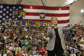 美国民主党总统参选人希拉里十九日在宾夕法尼亚州进行竞选活动。