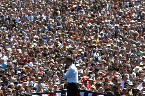 美国民主党总统竞选人奥巴马十八日在俄勒冈州对民众演讲。