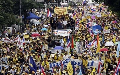 此次反政府活动是由泰国人民民主联盟(民盟)组织的。示威者和警察的对峙使得总理府周边区域陷入混乱,道路的交通完全中断,学校停课,总理府各部门不得不放假一天。