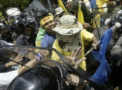 泰国示威民众与警察冲突。