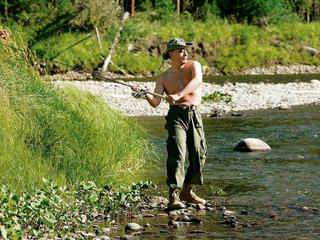 去年8月刊登的普京赤膊钓鱼照片显示了时任总统的普京在西伯利亚叶尼塞河钓鱼的情景,人们在那里看到了普京总统前所未有的“酷”形象:他露出魁梧的上半身,头戴军用野营帽,戴着一幅太阳镜,手里拿着一根钓鱼杆,他的钓鱼动作非常优雅和专业。