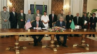负责中东外交事务的美国助理国务卿韦尔奇与利比亚外交部美洲事务负责人费图里,分别代表两国政府在协议上签字。韦尔奇表示,这是为两国关系开启新一页的协议;费图里说,这是经过漫长而且筋疲力竭的谈判后的成果。