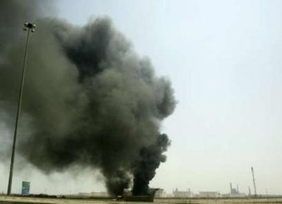 炼油厂大火释放出大量黑烟,浓烟在科威特市40公里以外都能看见。