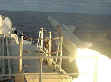 中国海军战舰发射俄制日炙反舰导弹(资料图)