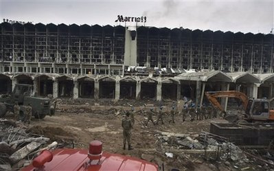 遭自杀式炸弹袭击后的万豪大酒店。