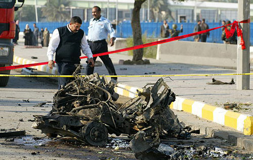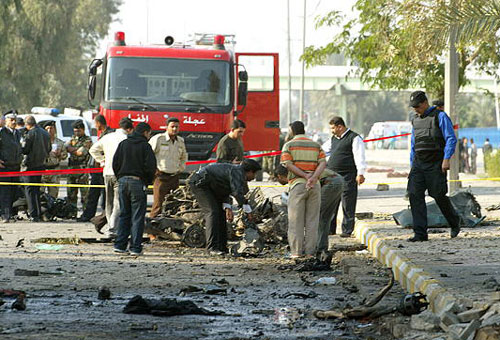 12月1日,在伊拉克首都巴格达,伊拉克警察在巴格达警校大门外发生的自杀式汽车爆炸现场检查。据报道,当天发生在巴格达警校的爆炸袭击造成15人死亡,另有45人受伤。